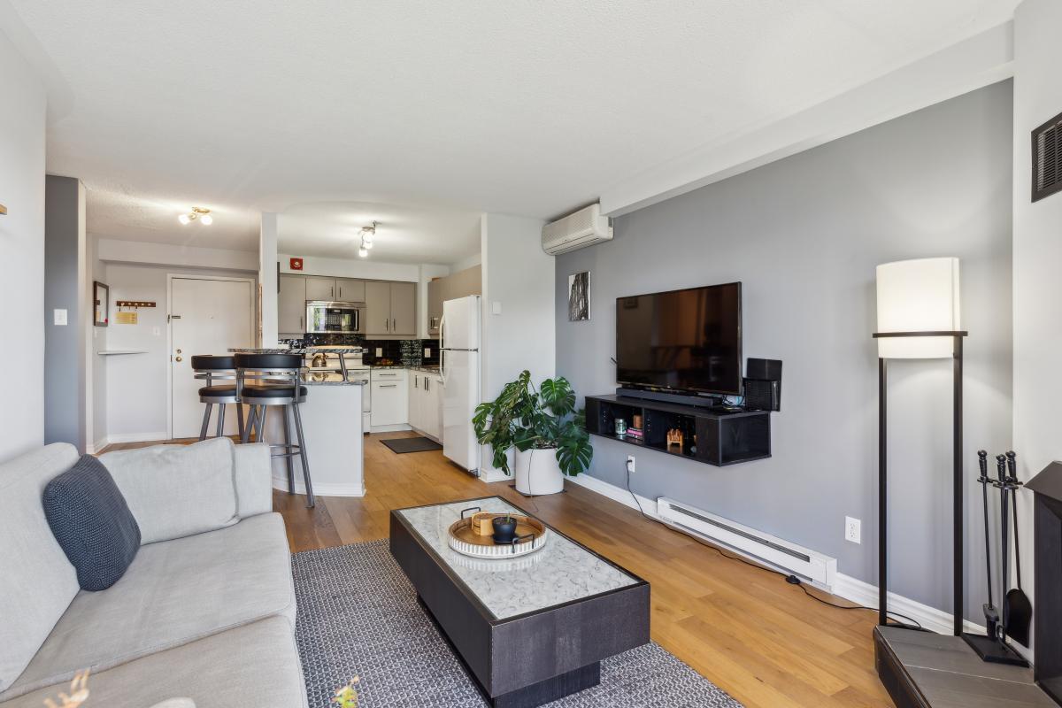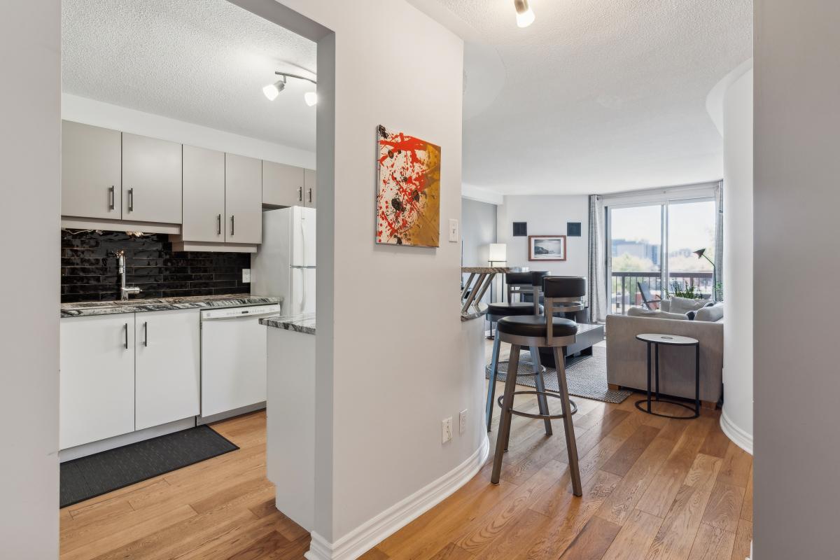 Welcome to this charming 2-bed, 1-bath condo located in the heart of the vibrant ByWard Market. Step into the well-designed open concept kitchen and living area, where functionality meets comfort. The kitchen features ample cabinet space, modern countertops, and a convenient breakfast bar that seamlessly connects to the living space, making it perfect for both cooking and entertaining. The living room is bathed in natural light, creating a warm and inviting atmosphere. Step outside onto your private balcony and take in the breathtaking views of the surrounding neighborhood. Residents of this condo also have access to a rooftop patio with panoramic views of the city. This condo includes one parking spot, providing added convenience for city living. Located in one of Ottawa's desirable neighborhoods, residents have easy access to the city's best dining, shopping, and entertainment options right at their doorstep. Don't miss out on this incredible opportunity! Condo fees: $742.33/Monthly - Includes Building Insurance, Caretaker, Management Fee, Water/Sewer